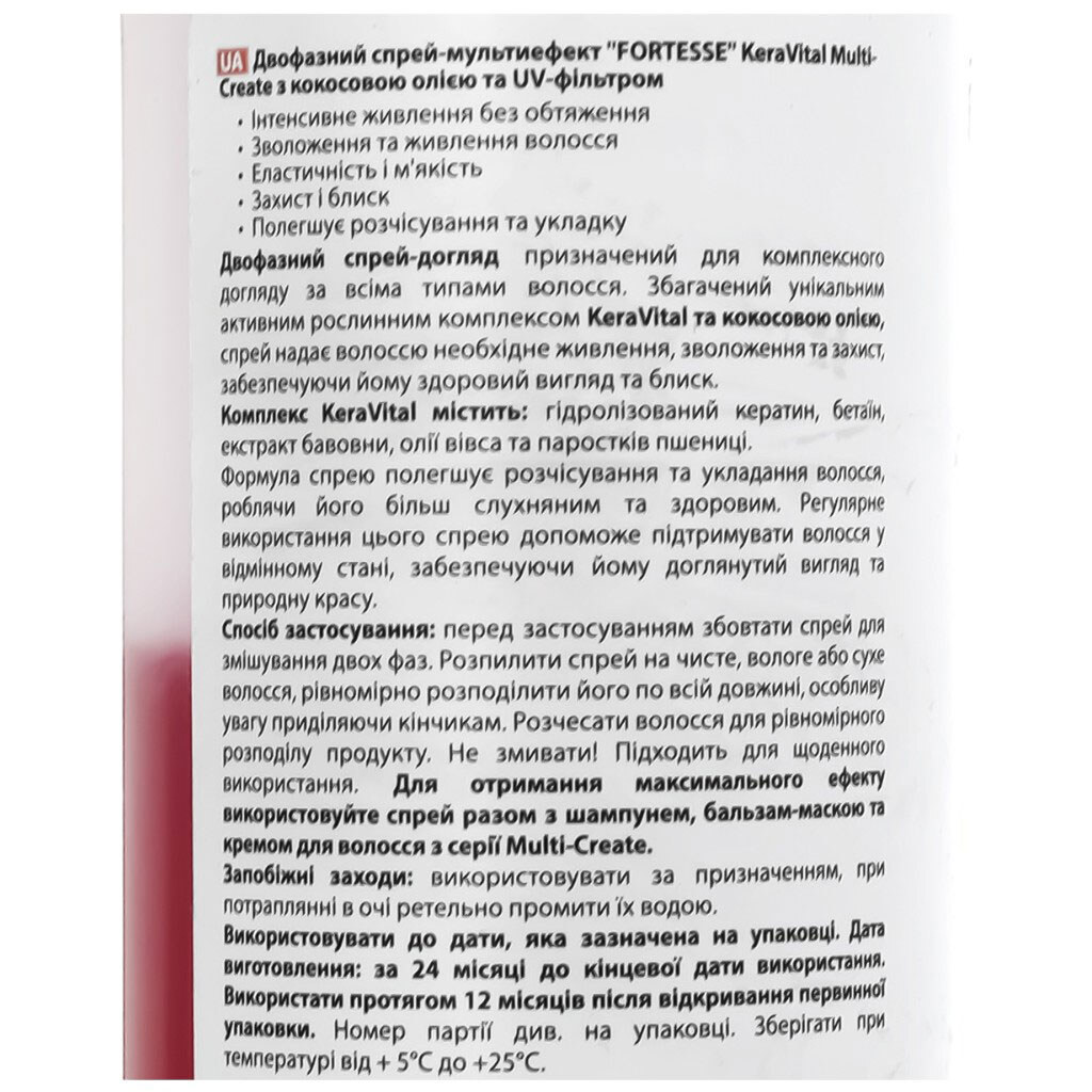 Спрей-мультиэффект для волос двухфазный FORTESSE KeraVital с кокосовым маслом 200 мл.