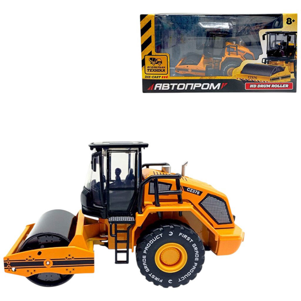Стройтехника мет. "Однобарабанный каток", подвижные детали в короб. 26,5x13,5x8,5см, Автопром