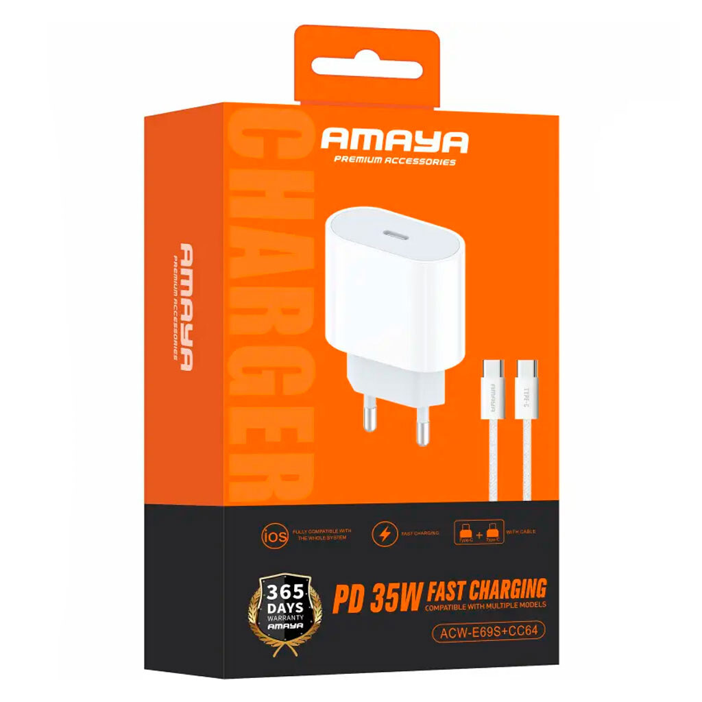 Купить СЗУ. Какая гарантия на СЗУ Amaya E69S, С кабелем, Type-C, Белый?