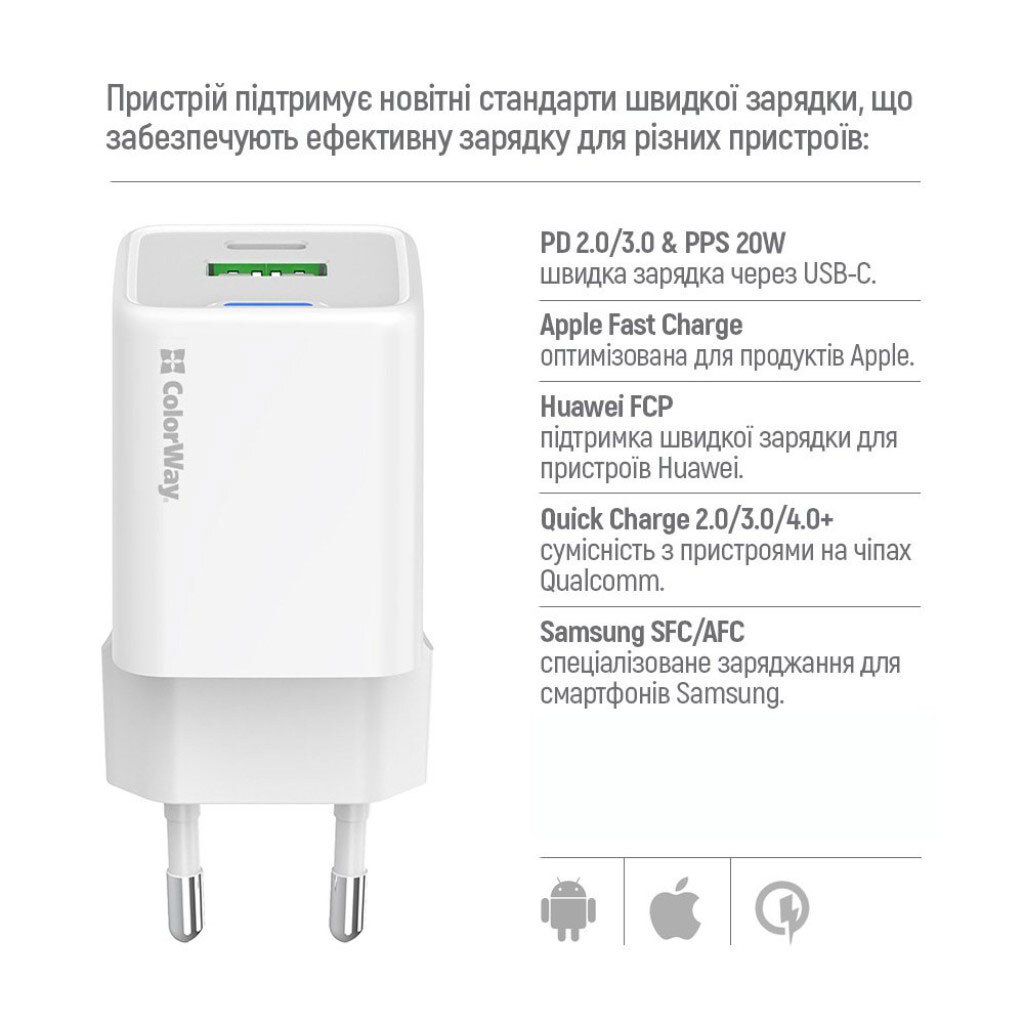 Купить ₴ Сколько стоит СЗУ ColorWay GaN Mini, Белый?