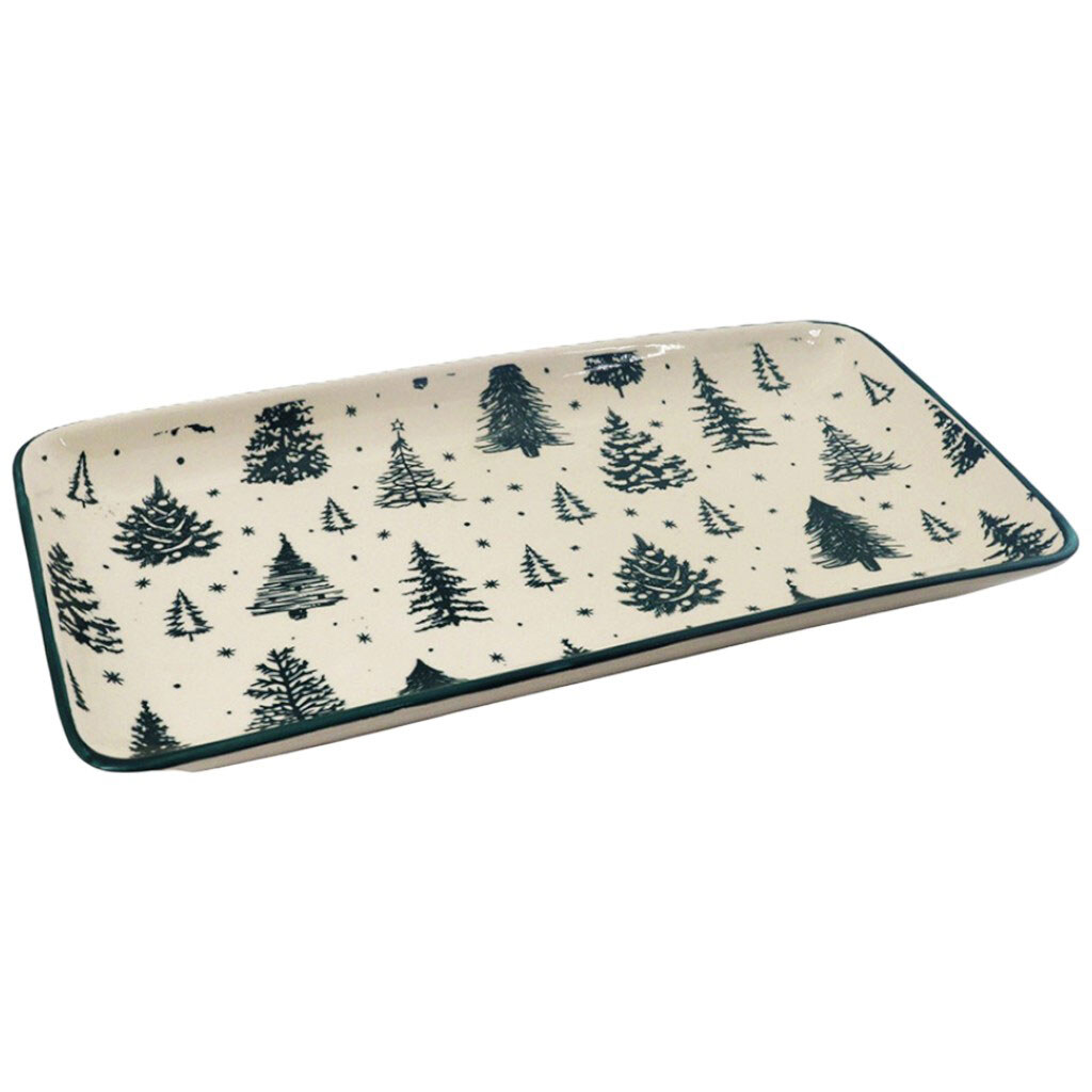 Тарелка фарфоровая прямоугольная "Рождественская" бело-зеленая, 31х16 см