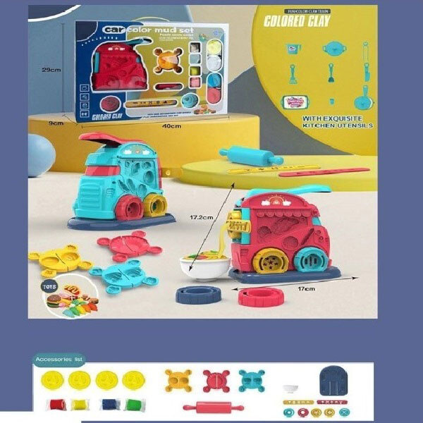 Тесто для лепки "Строительная площадка", машинки-конструкторы, 6 цветов теста, аксессуары, наклейки, в коробке, Xing Shuo Tys