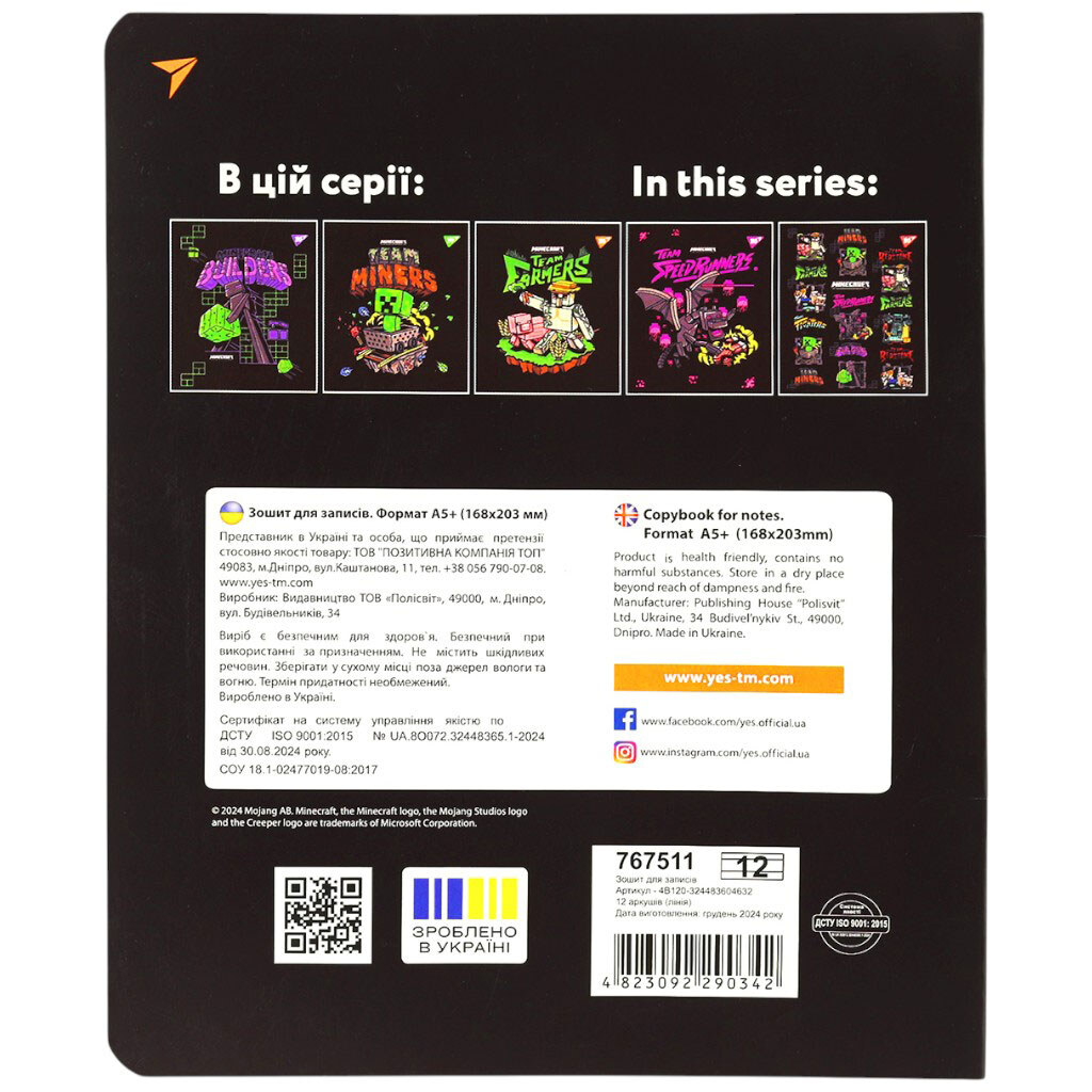 Тетрадь школьная линия YES серия Minecraft Team 12 листов