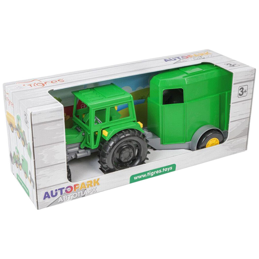 Примечание: Упаковка: Коробка | Вес в упаковке: 488 г | Габариты в упаковке: 39 x 13 x 15.5 см | Страна производитель: Китай | Комплектация: Трактор, прицеп, конь