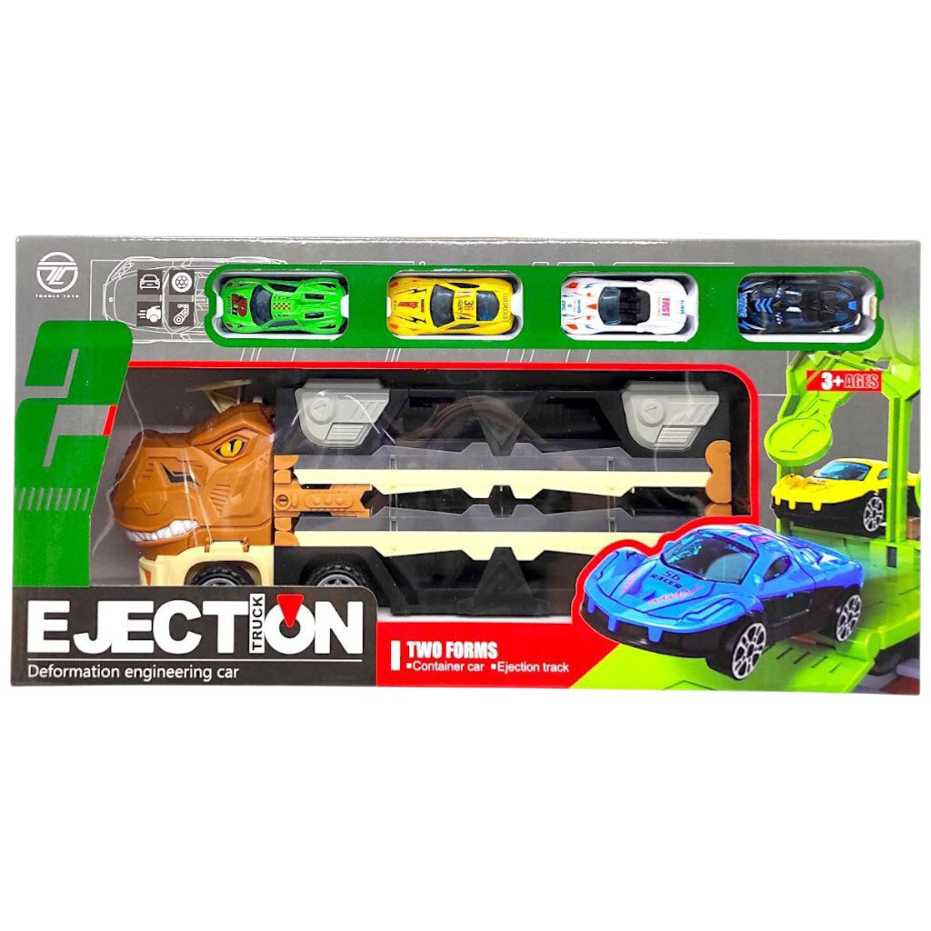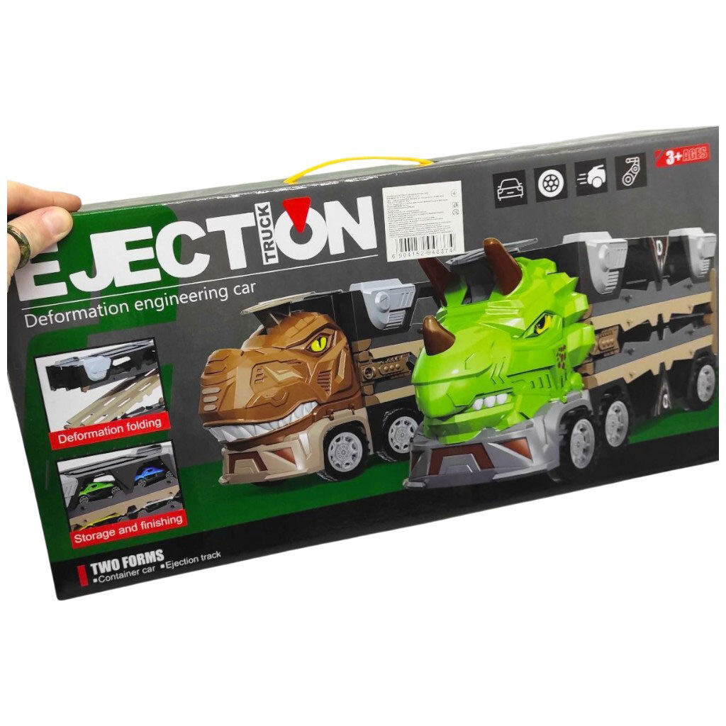 Трейлер-монстр-трек "Динозавр", запуск с металлическими машинками, кор.46,5x11x23 см, Tongle