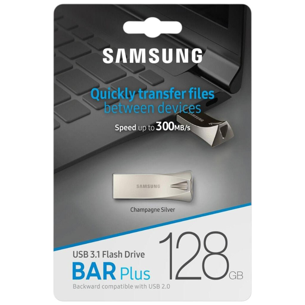 USB Flash Samsung Bar Plus, 128 Гб., Серебряный