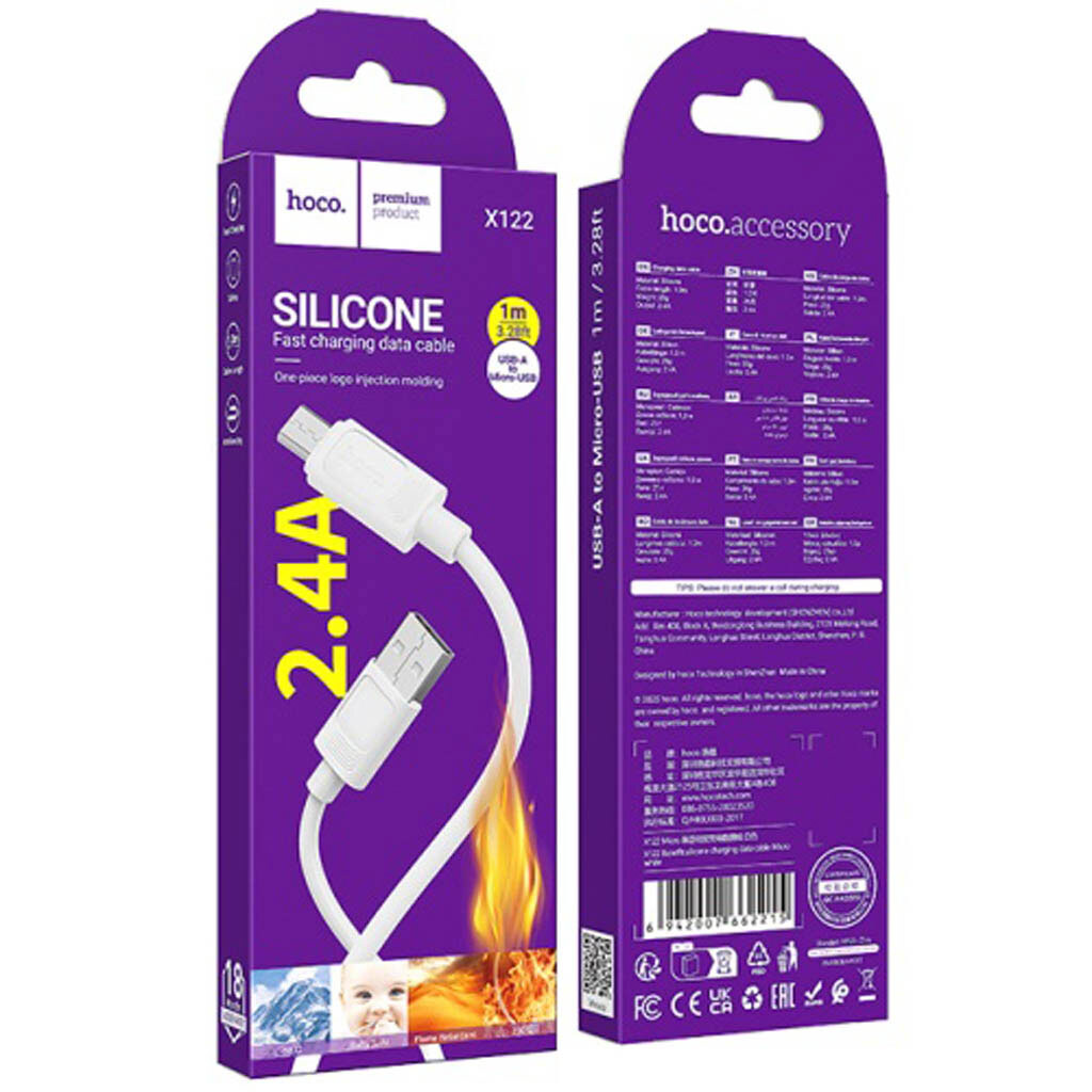USB кабель Hoco X122, MicroUSB, 1.0 м., Белый