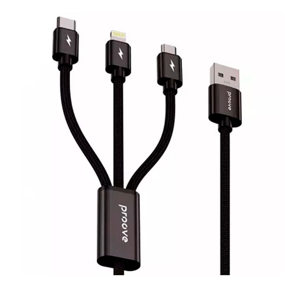 Купить ₴ Сколько стоит USB кабель Proove CCTC15001501 Triple Connection, Lightning, Type-C, MicroUSB, 1.3 м., Черный?