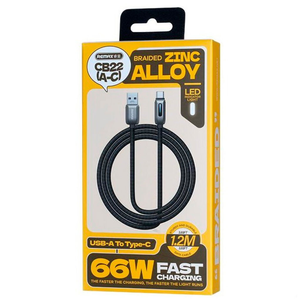 Купить ₴ Сколько стоит USB кабель Remax CB22 Raybeam Zink Alloy, Type-C, 1.2 м., Черный?