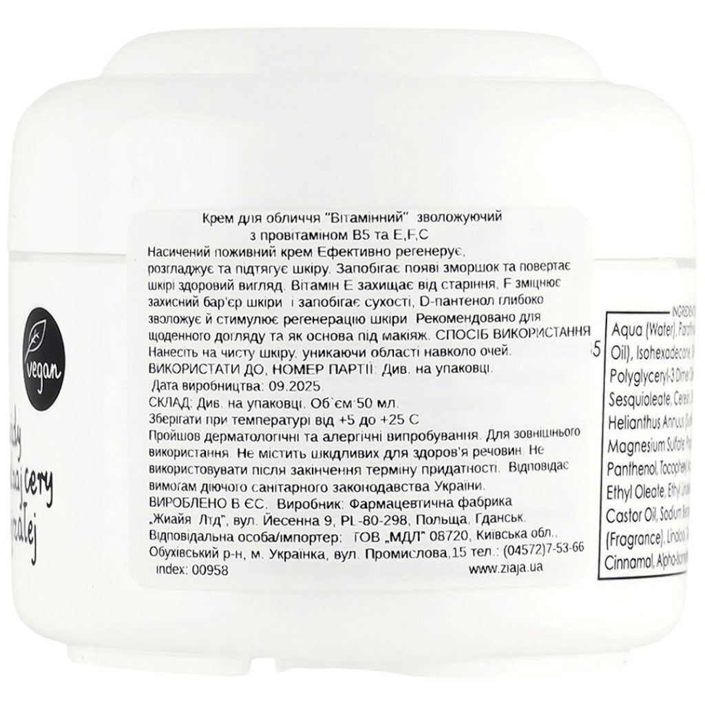 Увлажняющий крем для лица Ziaja Витаминный с провитаминами В5, E, F, C, 50 мл