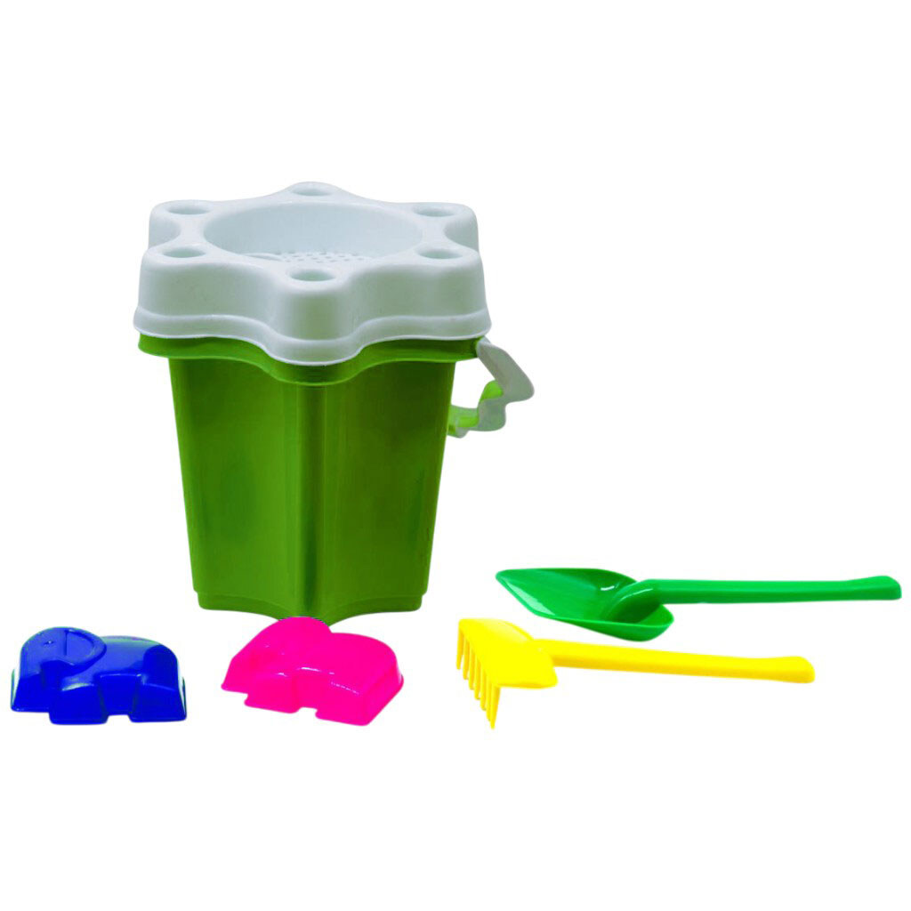 Ведро "Цветочек-2", набор: лопатка+грабли+2 пасочки, Bamsic