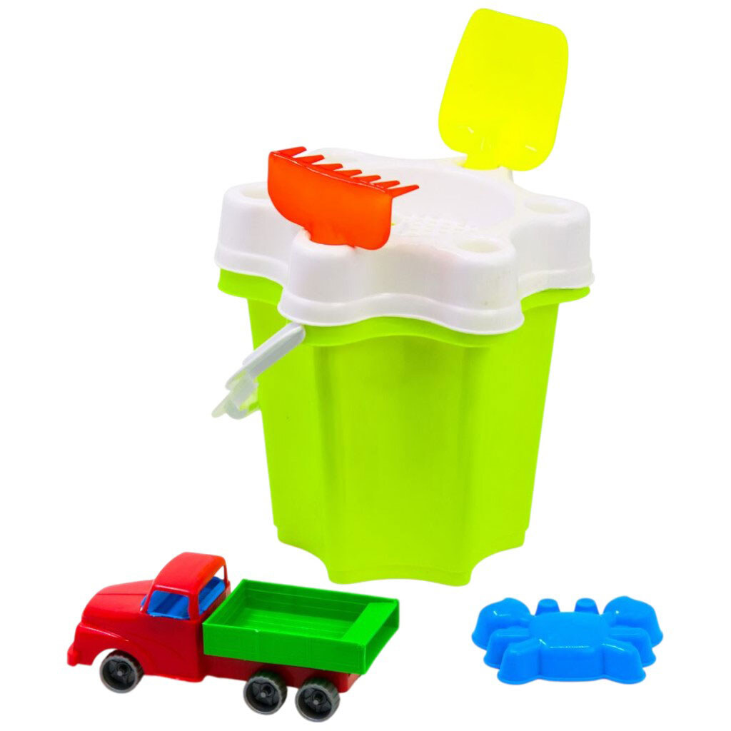 Ведро "Цветочек", с машинкой и песочным набором, Bamsic