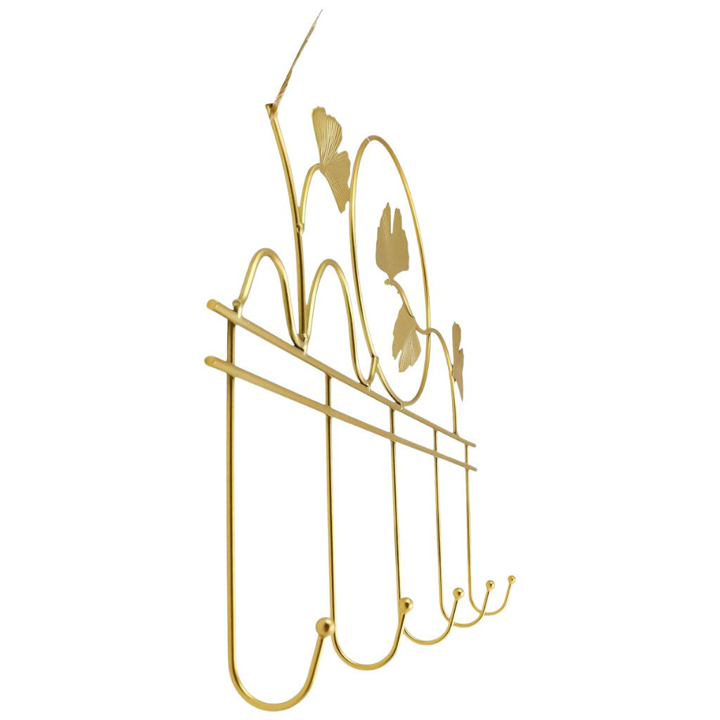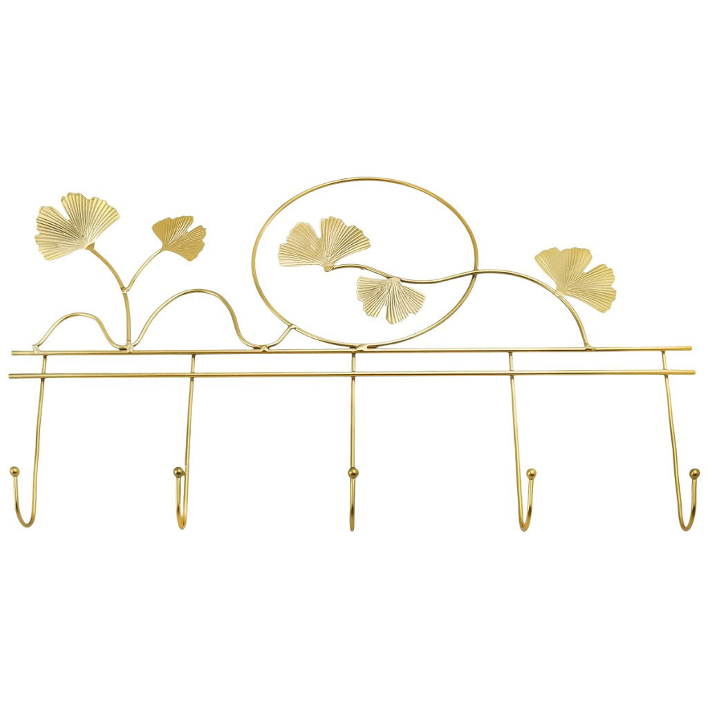 Вешалка настенная металлическая с крючками "Листья", золотая