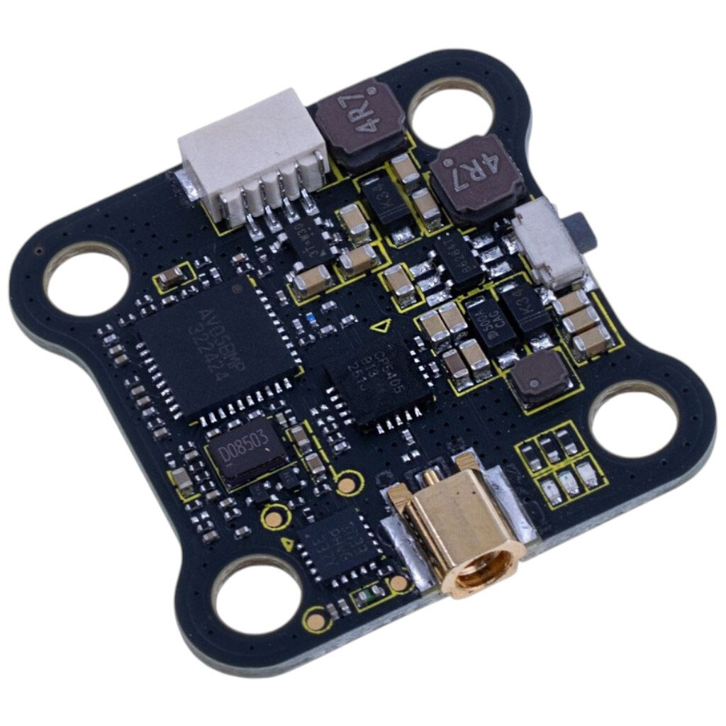 Примечание: Описание: FPV видеопередатчик 5.8Ghz с 48 каналами, выходной мощностью PIT/25/200/400/800mW, поддержкой протокола IRC Tramp, изменением параметров через аппаратуру или приложение SpeedyBee (WiFi/Bluetooth), режимом Pit Mode. Металлический радиатор для защиты компонентов. Питанием 3,7...5,5V. Выход 5V/250mA. Видеовход 75Ω, разъем MMCX/JST-SH1.0x4. Монтаж: 20x20 M2, габариты: 28x28мм, вес: 5.6г. | Назначение: Видеопередатчик 5.8GHz