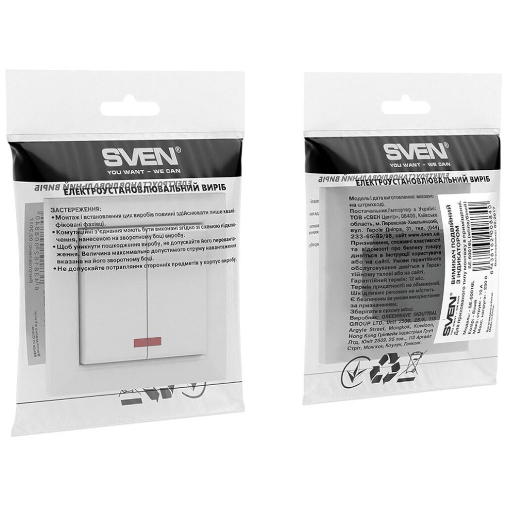 Выключатель двухклавишный встраиваемый SVEN SE-60016L, белый