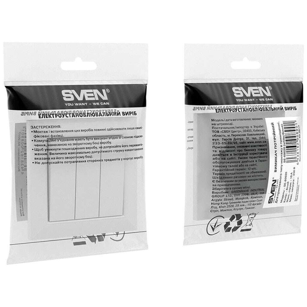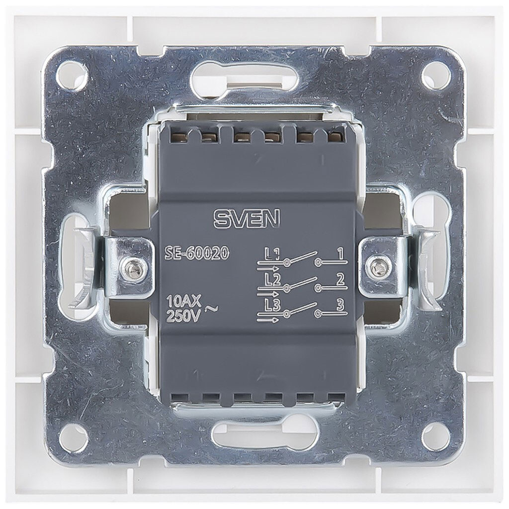 Выключатель трехклавишный встраиваемый SVEN SE-60020, белый