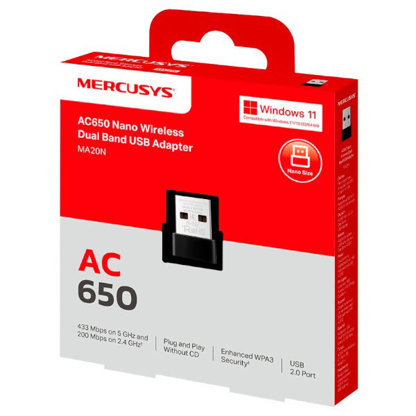 Wi-Fi адаптер Mercusys MA20N, Черный