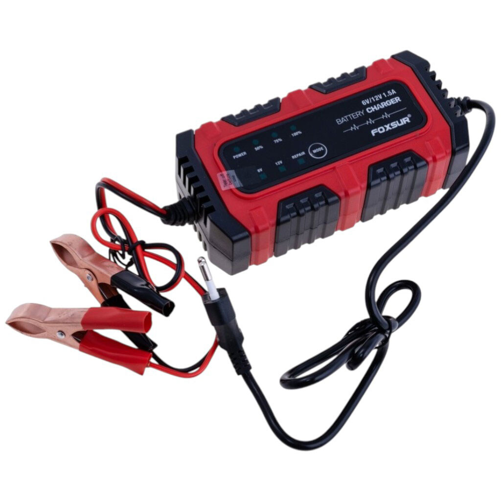 Примечание: Описание: Зарядное устройство для 6V/12V свинцово-кислотных аккумуляторов (AGM, GEL, EFB, SLA, WET). Подходит для аккумуляторов емкостью 4Ah–30Ah. Режимы: 6V, 12V, Repair – импульсный режим восстановления старых или сульфатированных батарей (16 часов). Зарядный процесс CC/CV/Float, автоматическое определение напряжения, защита от неправильного подключения, перегрева и короткого замыкания. Работает от 100-240V 50/60Hz, зарядное напряжение: 6V-7,4V / 12V-14,8V, максимальный ток: 1.5A, охлаждение пассивное. Габариты 141x68x45мм. | U вх: 100...240 VAC | U исх: 6/12 VDC | Ток вых: 1,5 A | Мощность: 25 W | Габариты: 141x68x45 mm | Вариант выполнения: Зарядное устройство для свинцово-кислотных