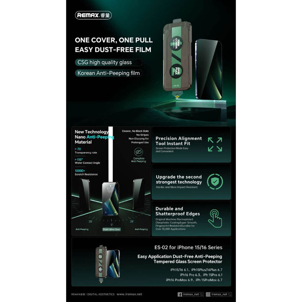 Защитное стекло Apple iPhone 15 Pro, Remax ES-02, Черный