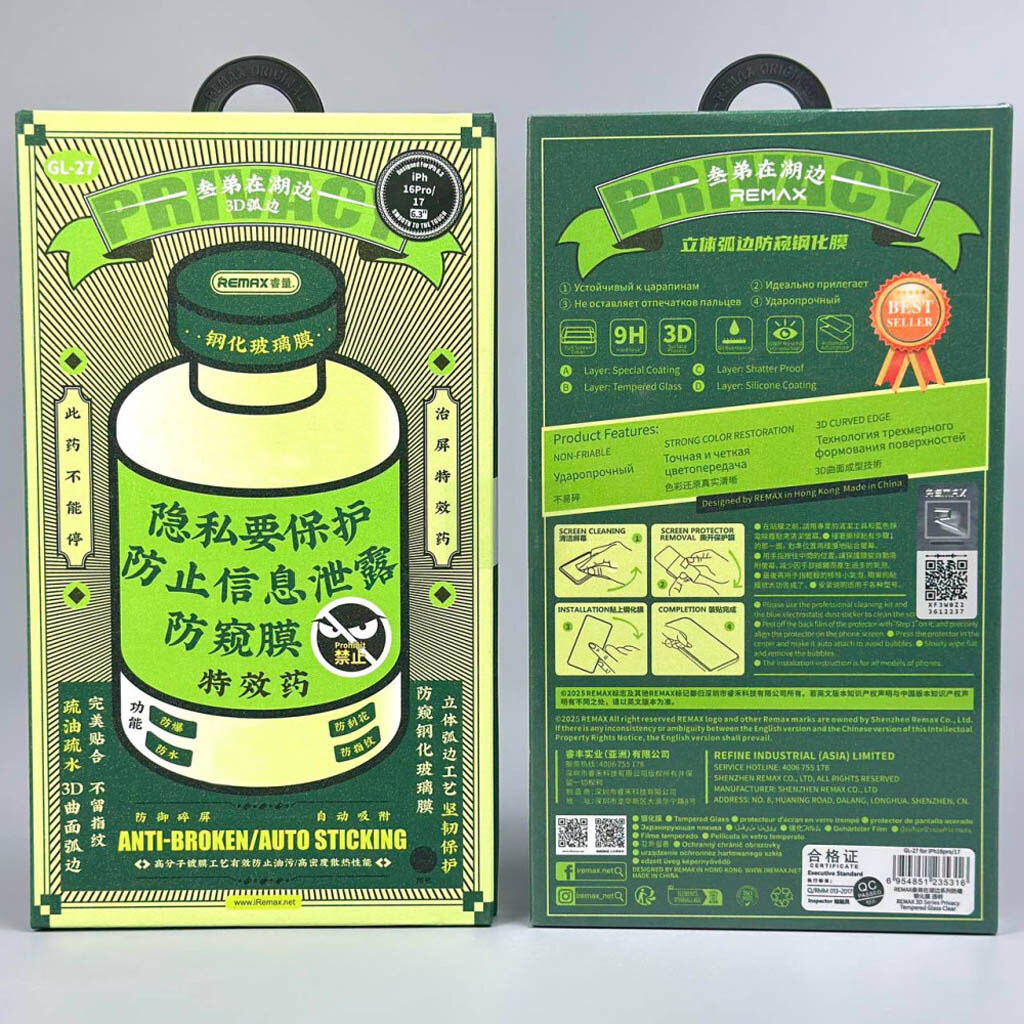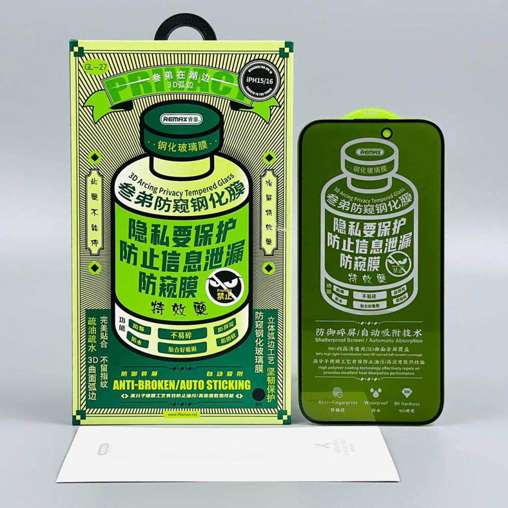 Защитное стекло Apple iPhone 17, Remax GL-27 Privacy, Антишпион, 3D, Черный