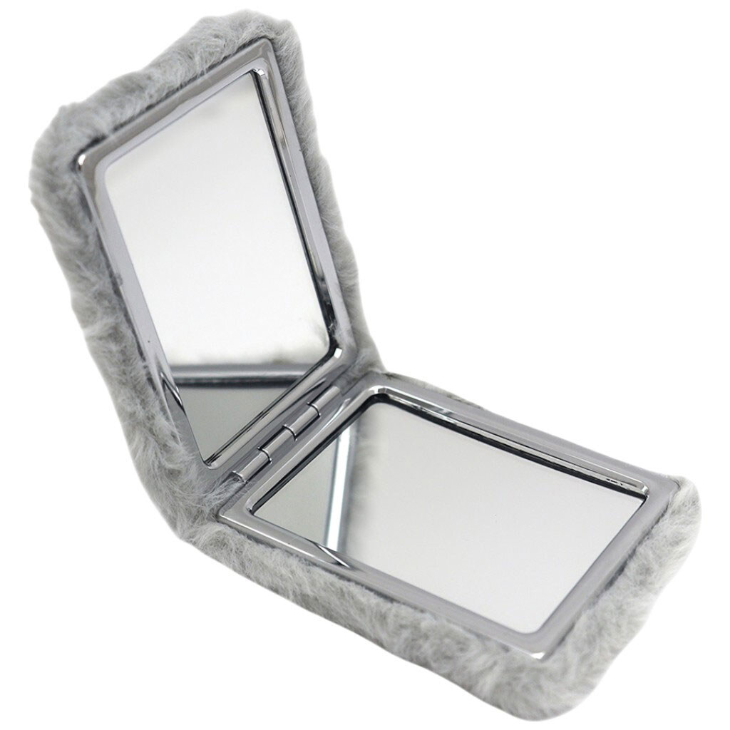 Зеркало карманное двухстороннее прямоугольное пушистое, 6х8,5 см