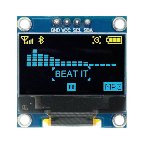 Примечание: Интерфейс:: I2C | Разрешение:: 128x64 | Цвет:: Синий – Желтый | Контроллер:: SSD1306 | Диагональ, дюйм:: 0.96