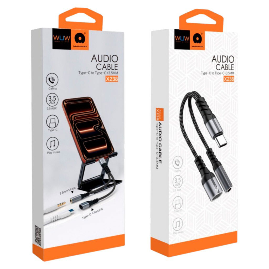 Адаптер WUW X238, Type-C, 3,5 мм., Чорний