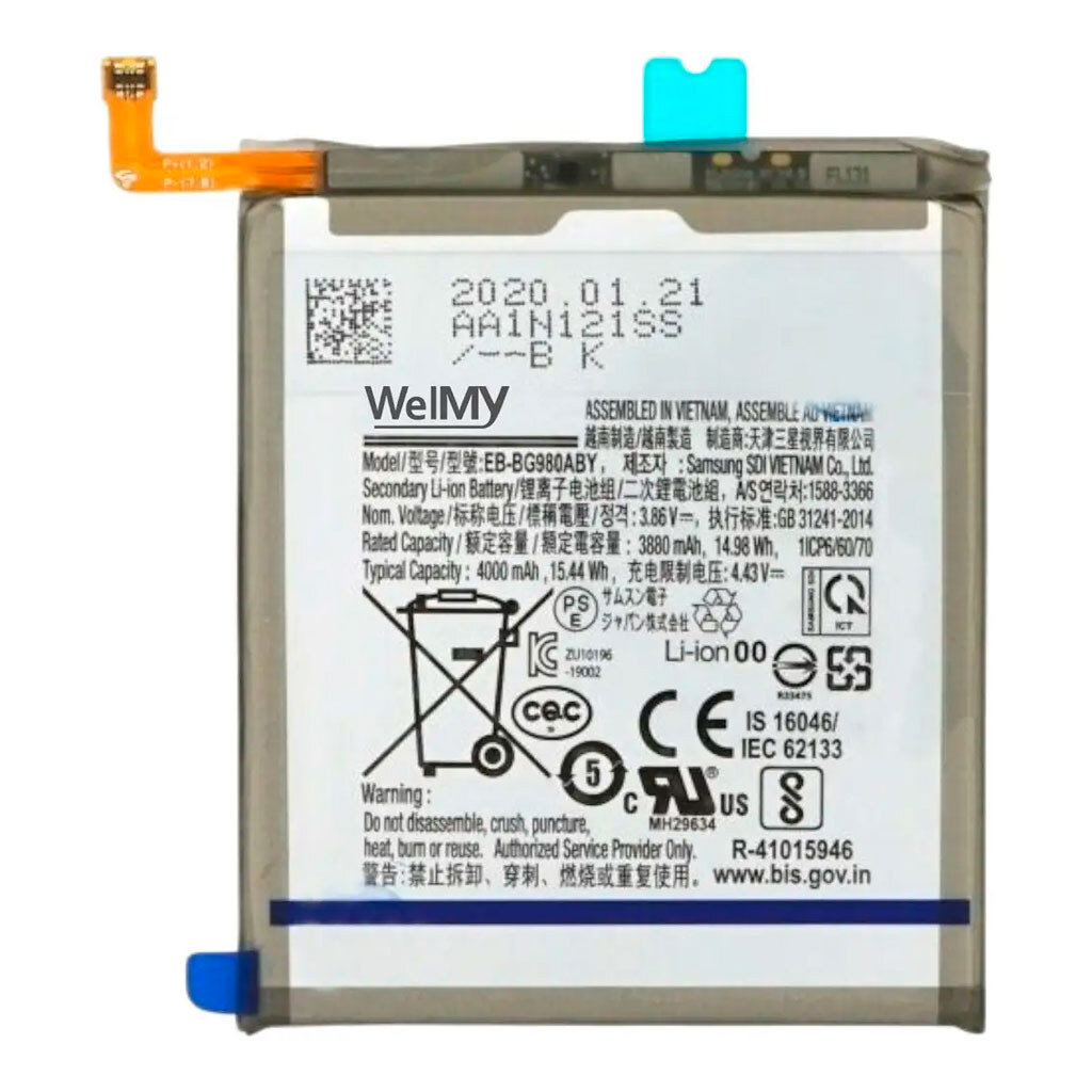 Акумулятор Samsung G980 Galaxy S20 / G981 Galaxy S20 5G, Welmy, High quality має великий ресурс роботи та циклів заряду/розряду. Завдяки цим двом якостям акумулятор прослужить якнайдовше. Крім того, завдяки достатній ємності АКБ ця модель з артикулом 705162 утримуватиме заряд як мінімум 10-12 годин при помірному користуванні.