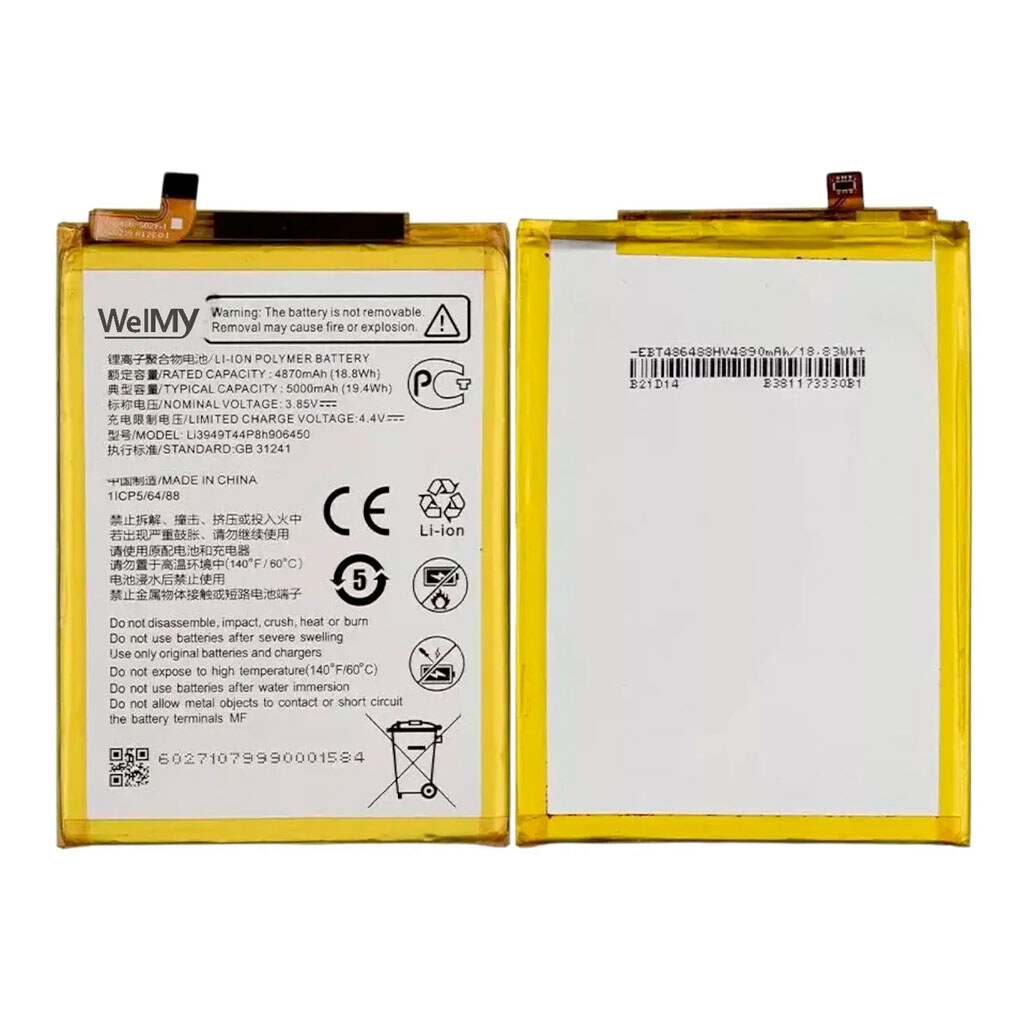 Акумулятор ZTE Blade V30 / Blade V30 Vita, Welmy, LI3949T44P8H906450, High quality має великий ресурс роботи та циклів заряду/розряду. Завдяки цим двом якостям акумулятор прослужить якнайдовше. Крім того, завдяки достатній ємності АКБ ця модель з артикулом 705197 утримуватиме заряд як мінімум 10-12 годин при помірному користуванні.