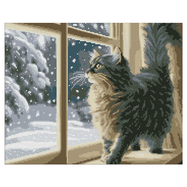 Алмазна мозаїка "Снігопад за вікном", з голограмними стразами, 40х50см, Ідейка