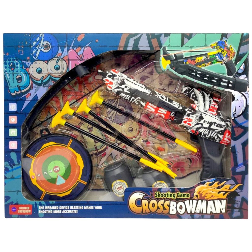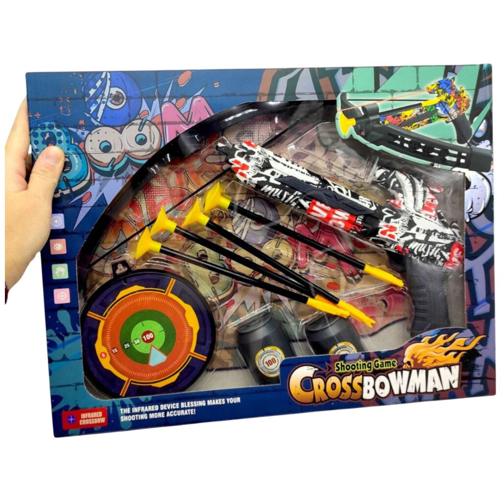 Арбалет, приціл із підсвічуванням, механічний принцип, 4 стріли на присосках, мішень, 2 пластикові банки, мікс, Mic