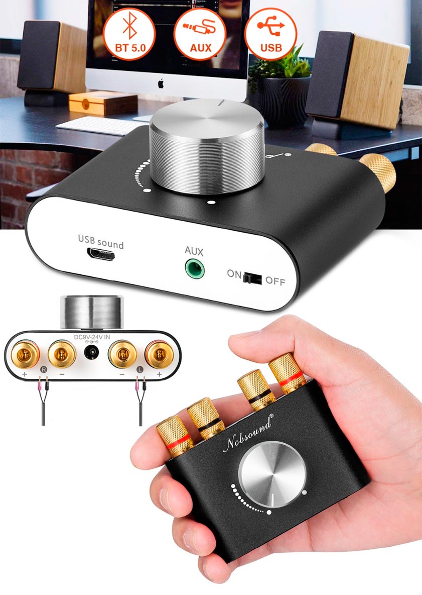 Надкомпактний 2-канальний підсилювач потужності звуку Nobsound NS-01G Pro (він же Pastop F900S) із вбудованим Bluetooth 5.0 модулем на чипі TPA3116.