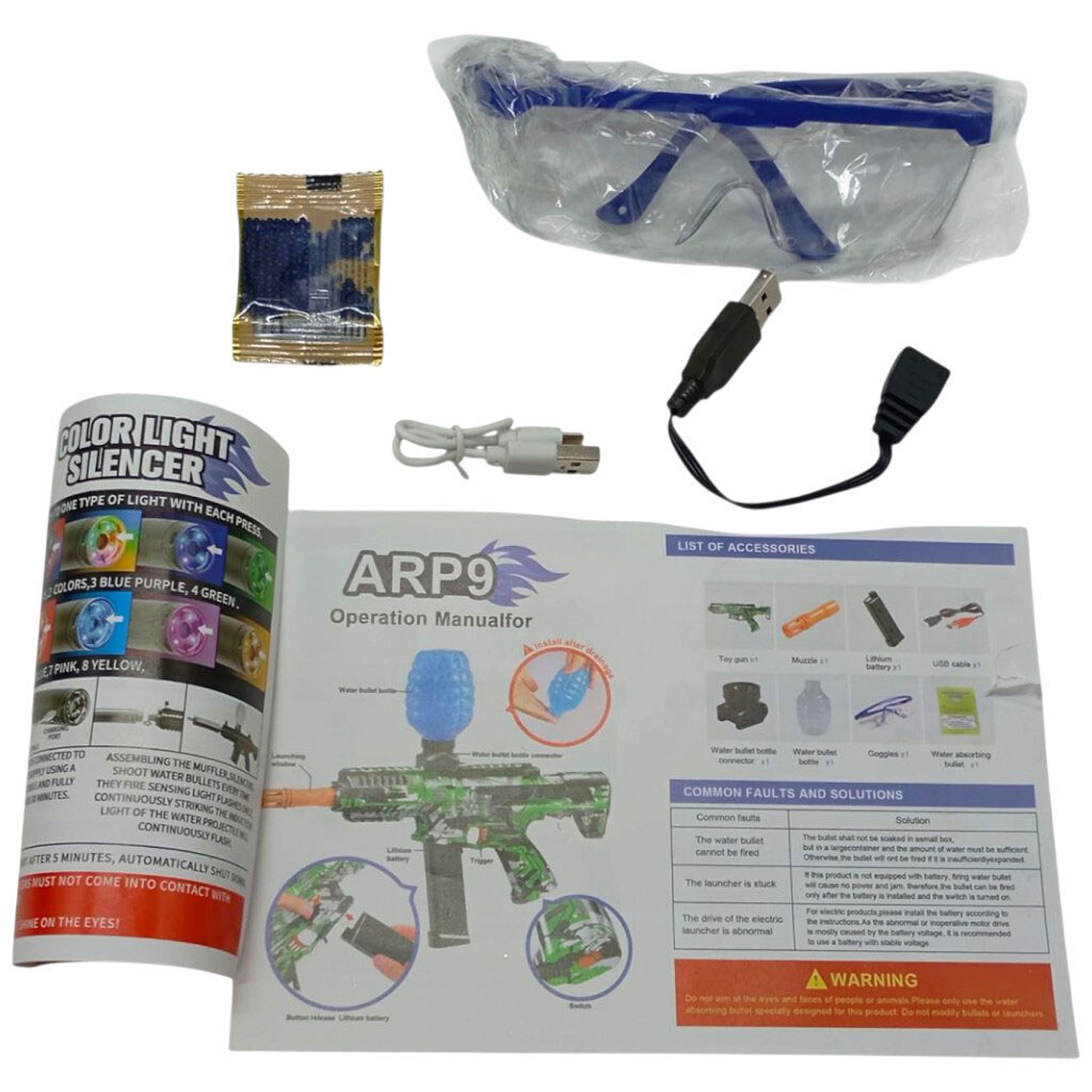 Автомат вбудований акумулятор, стріляє орбізами, глушник з підсвічуванням, магазин, захисні окуляри, в коробці, MING HAO