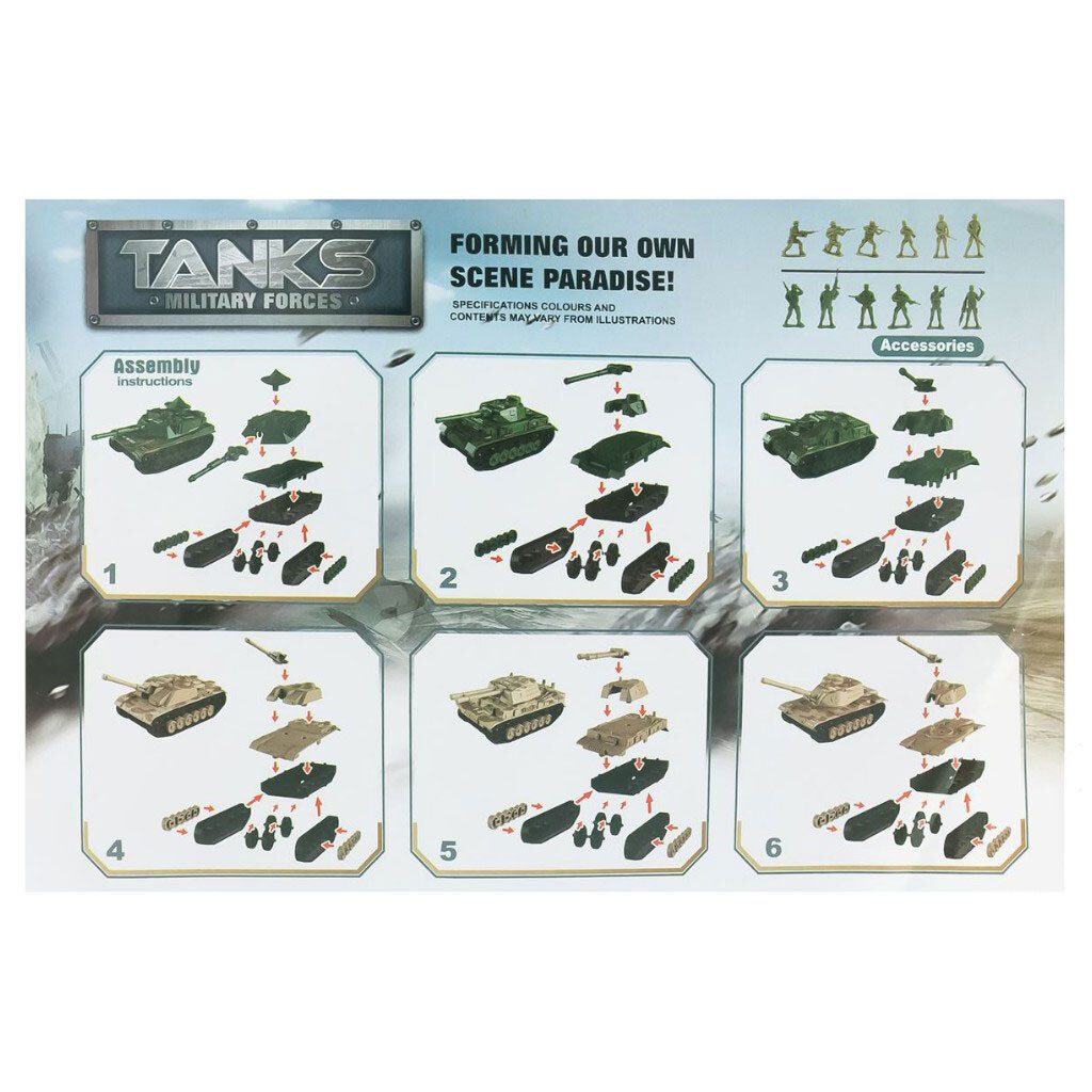 Примітка: Комплектація: 6 танків, 24 солдати | Країна виробник: Китай | Матеріал: ПВХ, поліпропілен | Призначення: Для активного розвитку дитини | Розмір упаковки: 28х18х7,5 см | Стать дитини: Для хлопчиків