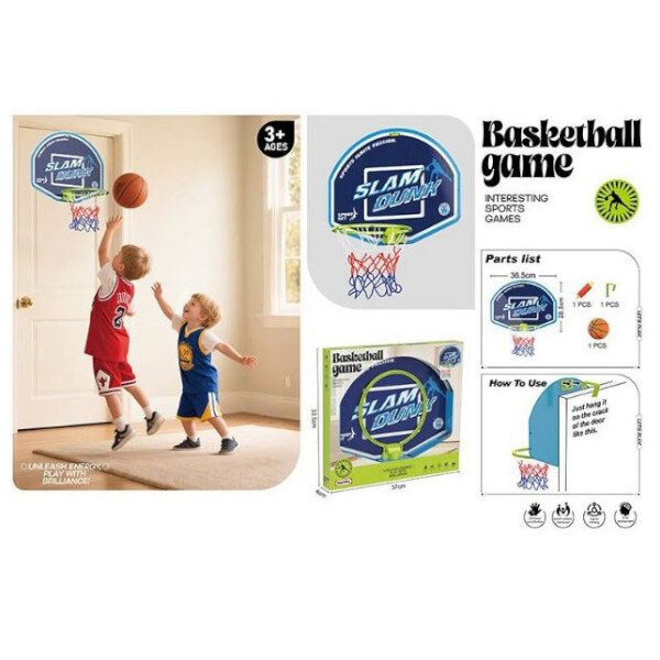 Баскетбольний набір, мʼяч, кошик, гачок для кріплення, насос, короб. 37x4x33,5 см, Mic