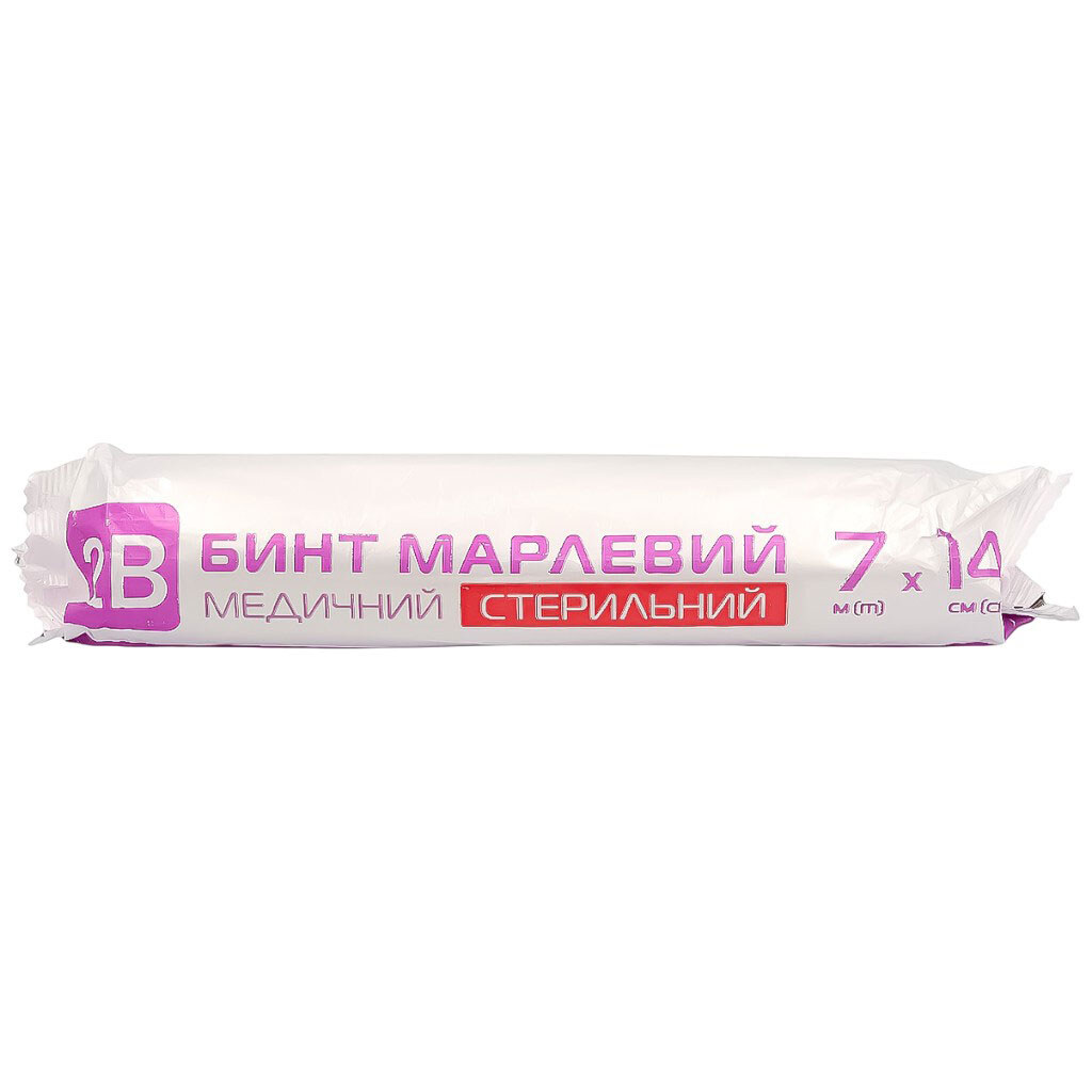Бинт марлевий медичний стерильний 2B, 7 м х 14 см