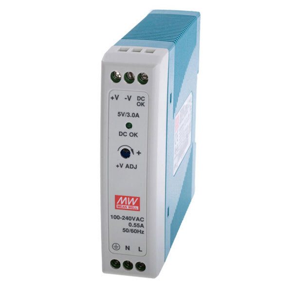 Примітка: Виробник: Mean Well|Потужність, W: 15 W|Тип: на DIN-рейку|U вх.: 85...264 VAC|120...370VDC|Габарити, мм: 22,5x90x100 мм|Вихідний струм, A: 3,0 A|Вих. напруга, V: 5 V
