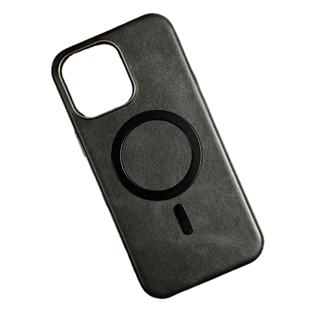 Чохол (накладка) Apple iPhone 13, Leather Magnetic Metal Frame, MagSafe, Чорний