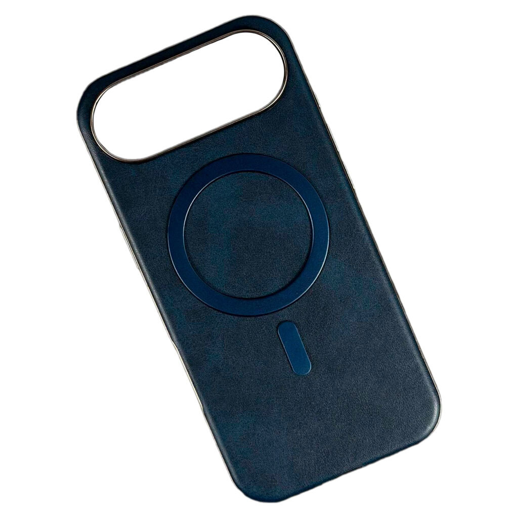 Чохол (накладка) Apple iPhone 17 Air, Leather Magnetic Metal Frame, MagSafe, Синій