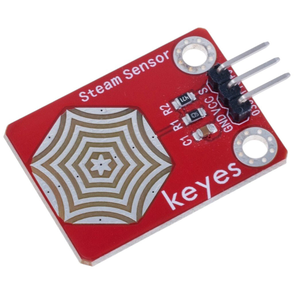 Примітка: Опис: Модуль датчик рідини, водяна пара в повітрі. Крок контактів 2,54 мм. Живлення: 3,3 ... 5VDC. Працює за принципом замикання доріжок водою. | Категорія: Модуль датчик | Призначення: Гігрометр