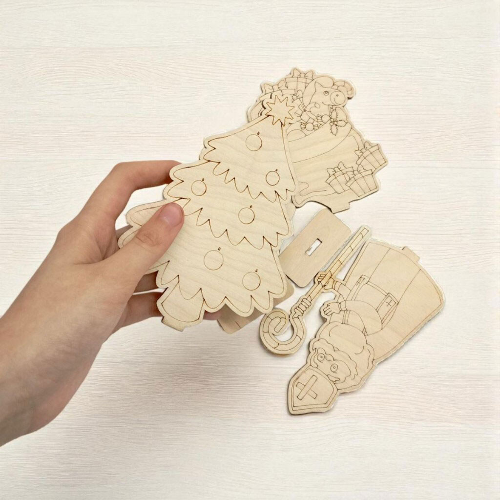 Дерев'яні прикраси, 3 фігурки в наборі, Зірка