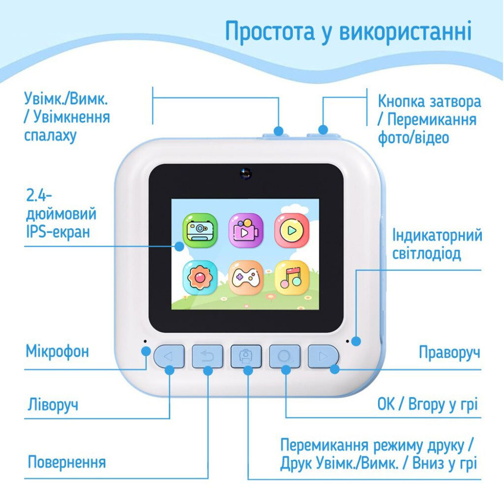 Дитячий фотоапарат ColorWay CW-PHP01B, Блакитний