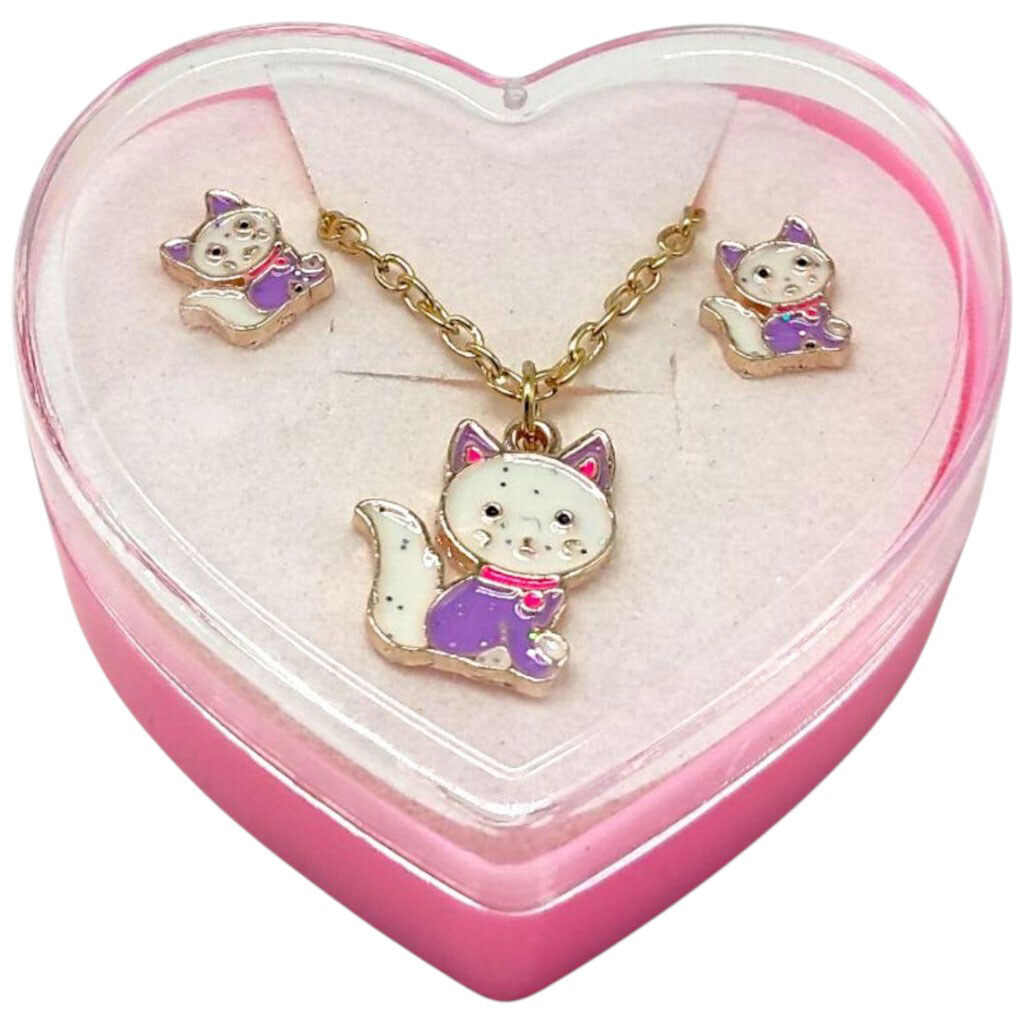 Дитячий набір прикрас: кулон+сережки, З світло лавандовою кицею, Mic