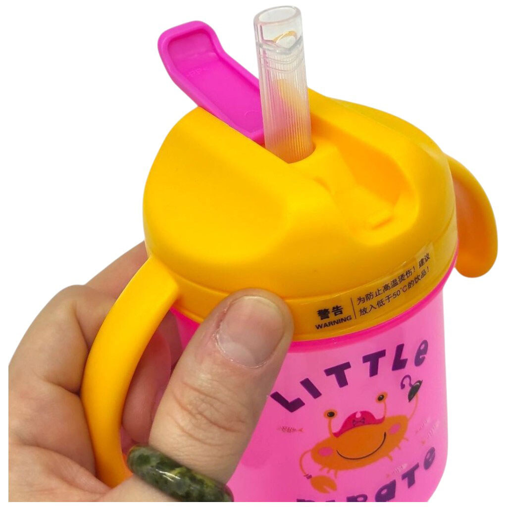 Дитячий поїльник з трубочкою, жовті ручки, 280 мл, Mega Zayka