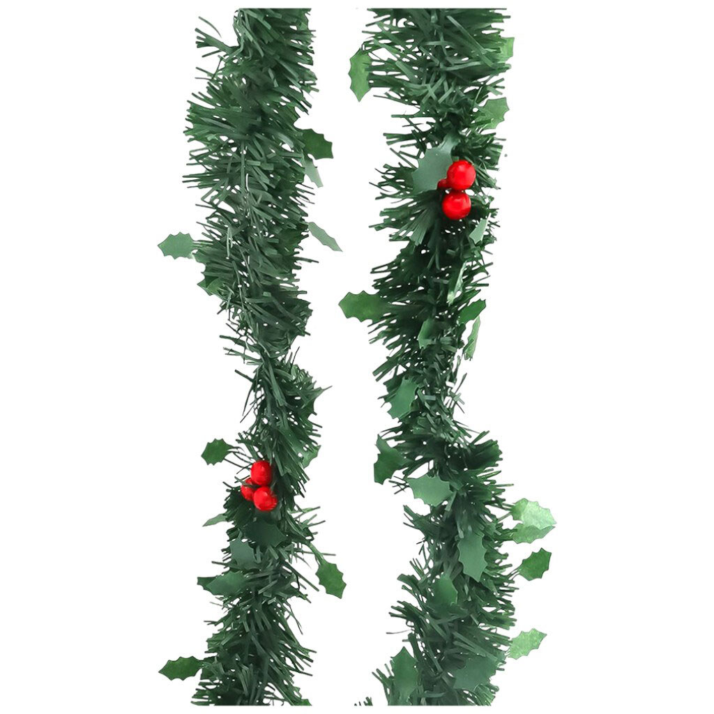 Дощик новорічний з декором ягідками зелений, 8х200 см, Mirko