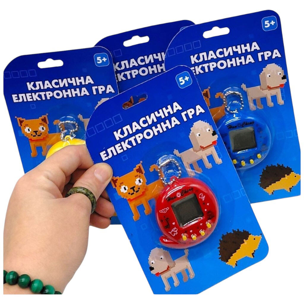 Примітка: Упаковка: Планшет | Тип електроенергії: Батарейки,AG13 | Кількість ел-тів живлення: 2 | Ел-ти живлення в комплекті: Є | Вага в упаковці: 31 г | Габарити в упаковці: 2 x 10.3 x 18 см | Країна виробник: Китай Комплектація: тамагочі