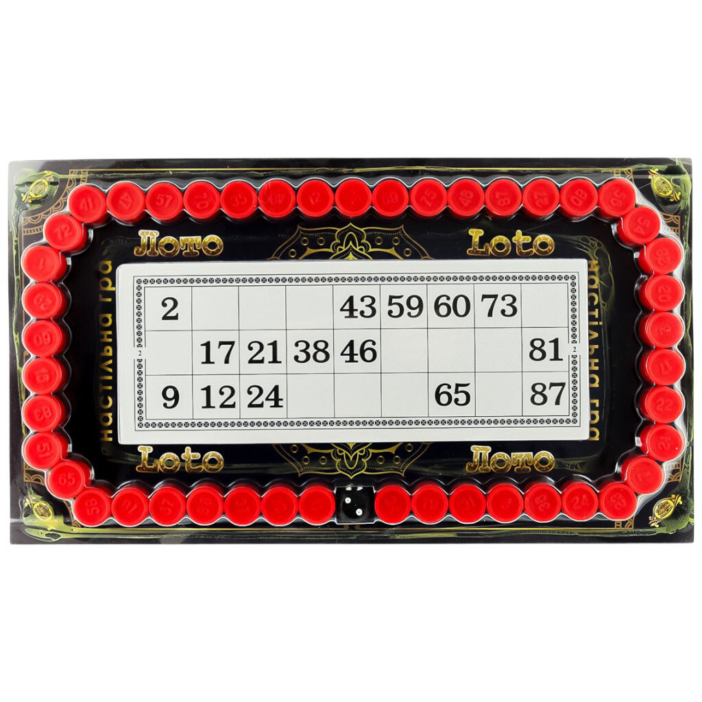 Примітка: Комплектація: Традиційні гральні картки лото - 24 шт., бочонки із зображенням чисел (від 1 до 90) - 90 шт., мішечок для бочонків - 1 шт., фішки "накривашки", правила гри | Країна виробник: Україна | Призначення: Для активного розвитку дитини