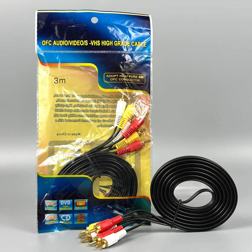 Кабель 3RCA-3RCA, 3.0 м., Чорний