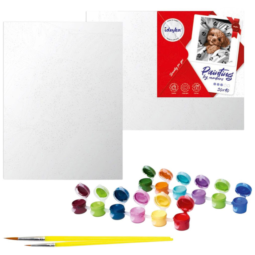 Примітка: Упаковка: Плівка | Габарити в упаковці: 2 x 30 x 40 см | Габарити без упаковки: 2 x 30 x 40 см | Країна виробник: Україна | Комплектація: натуральне полотно на підрамнику з галерейною натяжкою, 3 художні пензлики; соковита палітра пронумерованих, акрилових фарб у контейнерах (металізовані та звичайні); акрилові стрази згідно з комплектацією набору (круглі голограмні АВ-стрази); акриловий лак для роботи зі стразами (на одній палітрі з фарбами); спеціальна ручка-стилус з однією насадкою для роботи зі стразами; лоток для сортування стразів; Інструкція