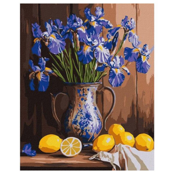 Картина за номерами "Іриси у вазі та лимони", 40x50см, Ідейка